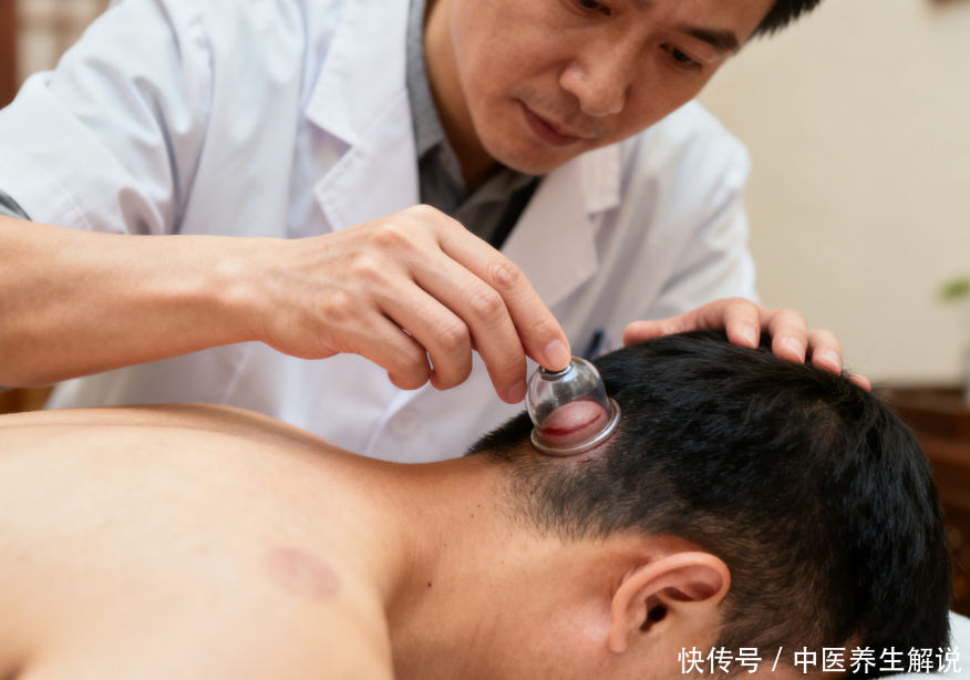 头部皮肤敏感,不能像拔后背那样留罐 10 分钟,要用 “闪罐法”: