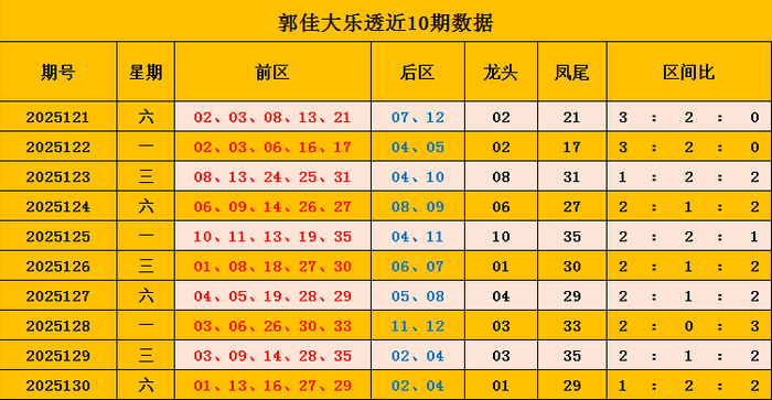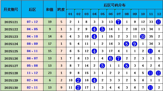 上期开出号码02、04,偶偶组合,近10期总奇偶总比7:13,偶数球开出次数多,本期后区推荐偶奇组合:02、11。