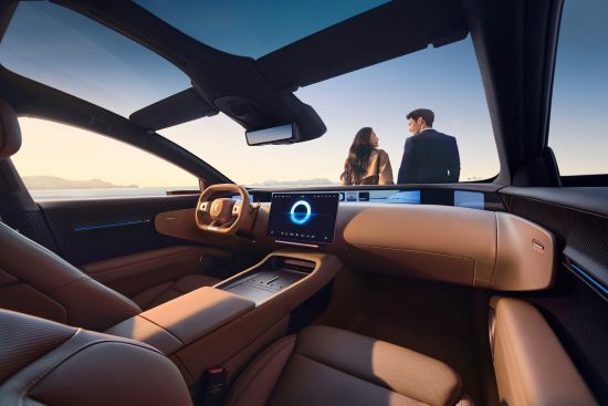 阿维塔12四激光版延续品牌标志性的“未来美学”设计语言,全新推出的“曦金灰”外观色,灵感源自破晓晨光;而“岩棕”内饰则与天然桦木饰板巧妙融合,共同打造出一个有温度的座舱空间。